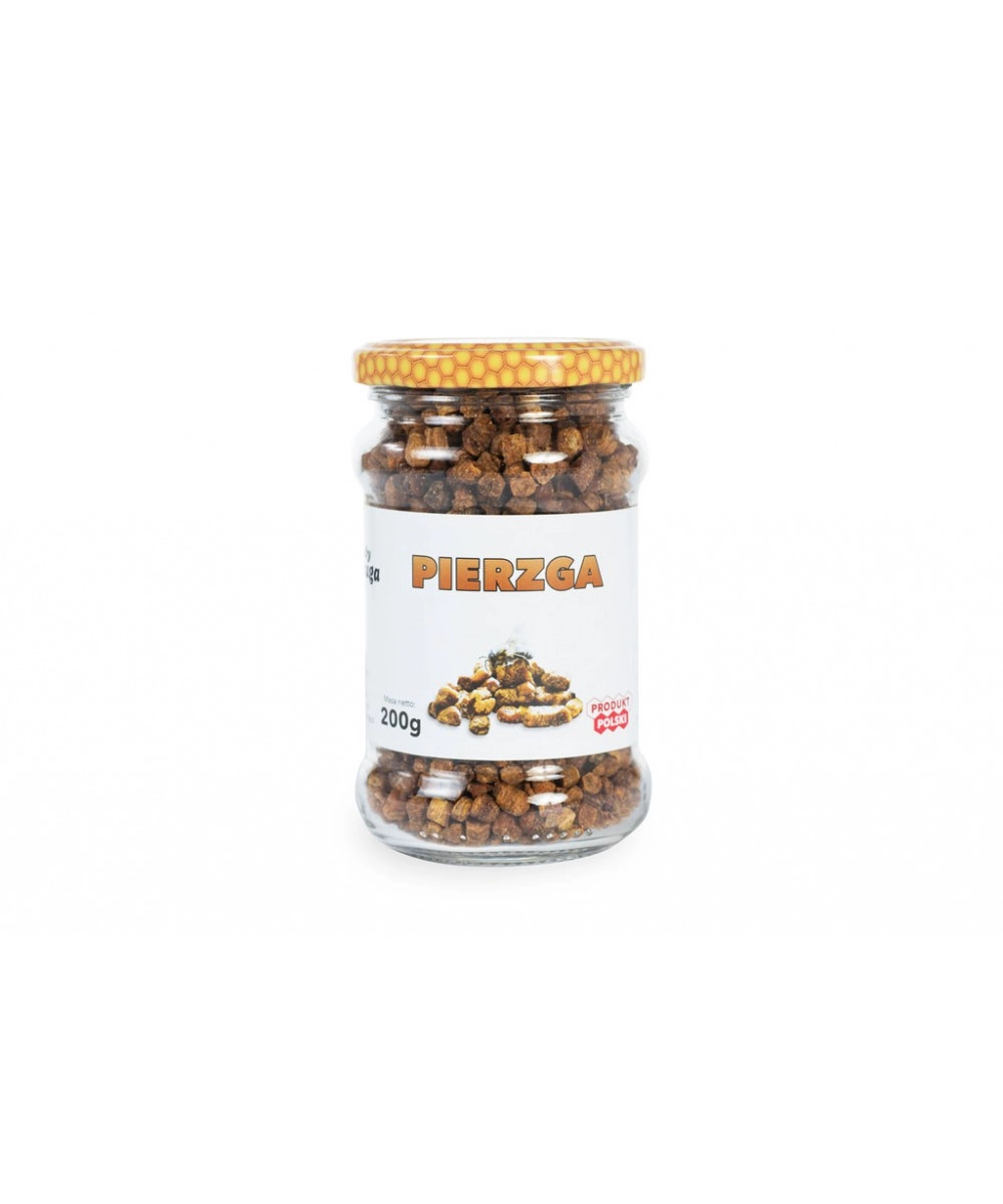Pierzga to przetworzony przez pszczoły pyłek kwiatowy, który złożony jest do komórek plastra i zalany miodem. Następnie w warunkach beztlenowych poddany jest fermentacji mlekowej.