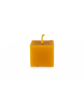 Świeczka w kształcie kostki z naturalnego wosku pszczelego.