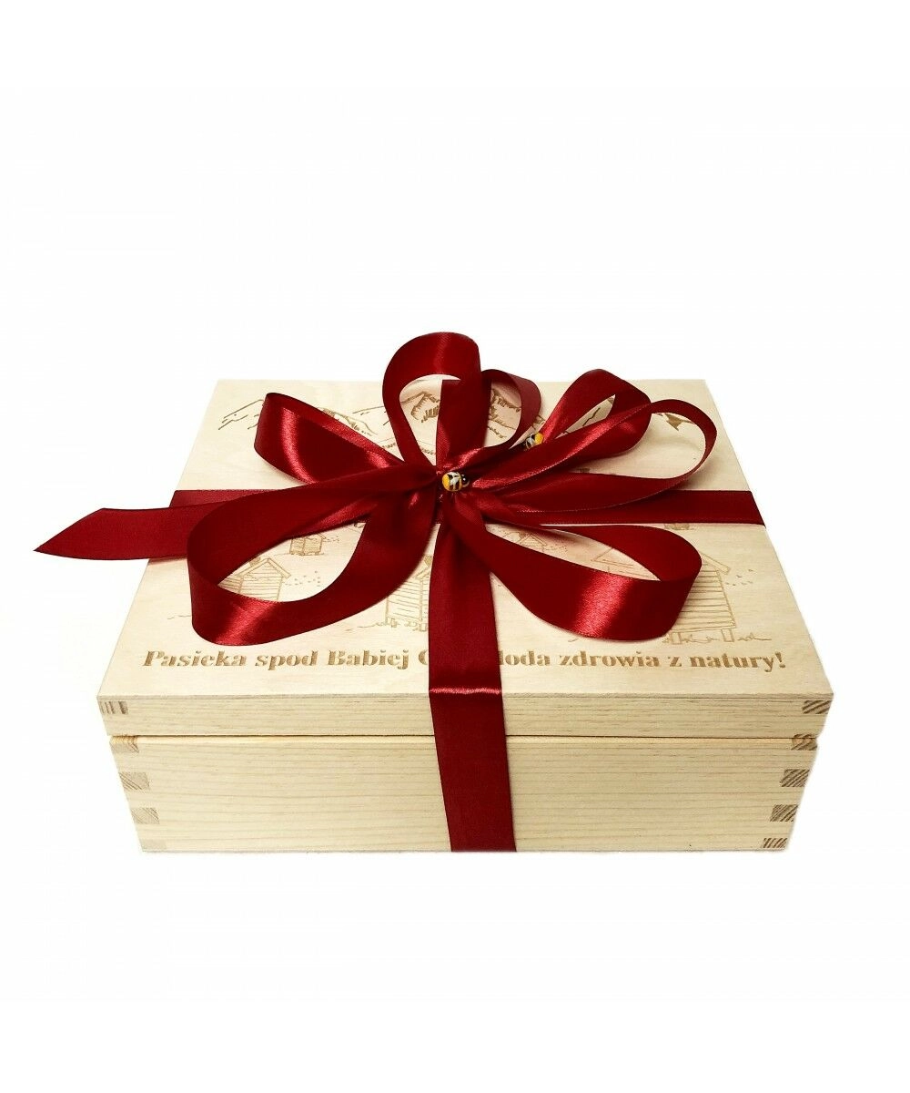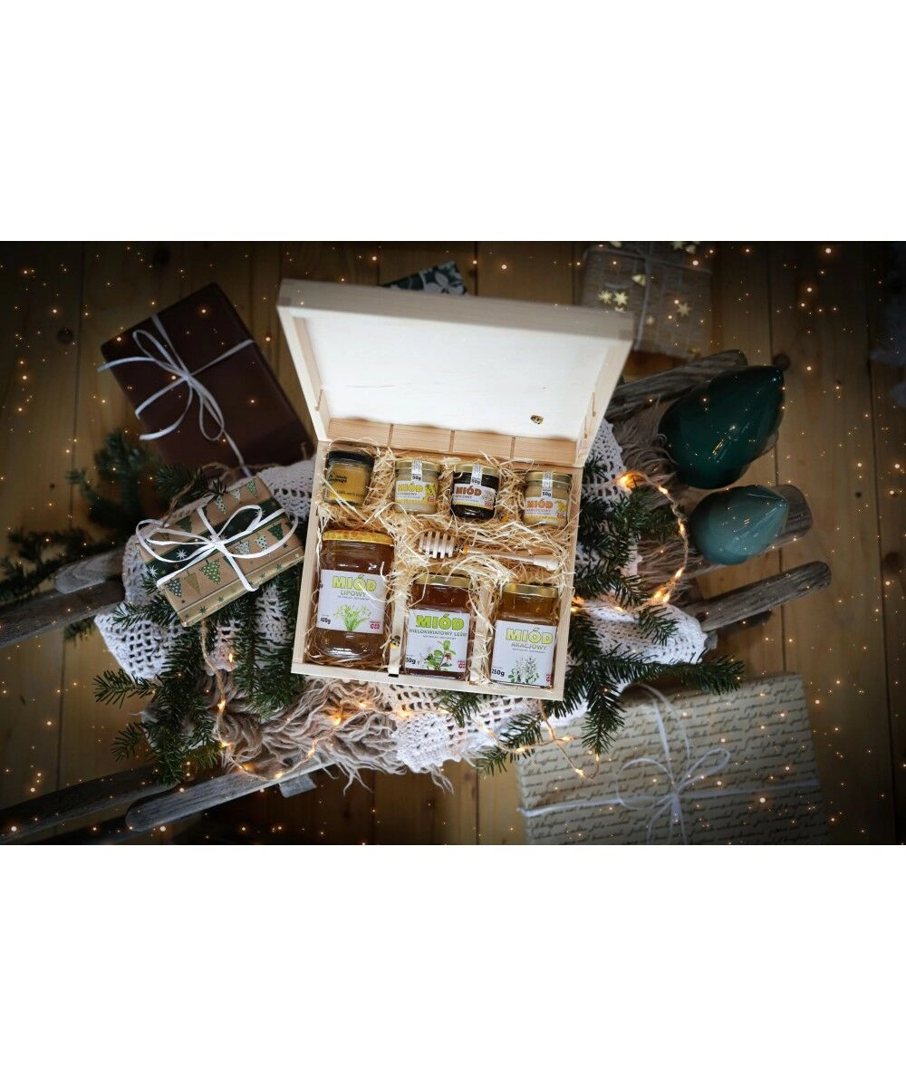 Zestaw firmowy naszej pasieki! Prezent składa się z miodu lipowego 0,4 kg, wielokwiatowo-leśnego 0,25 kg, akacjowego 0,25 kg, rzepakowego 50g, gryczanego 50g, nawłociowego 50g oraz świecy z naturalnego wosku pszczelego (40ml).