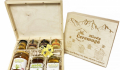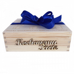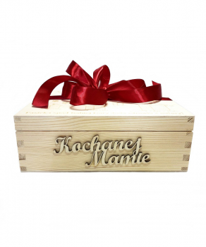 Całość w eleganckiej drewnianej szkatułce z firmowym grawerem oraz drewnianym napisem „Kochanej Mamie”.
