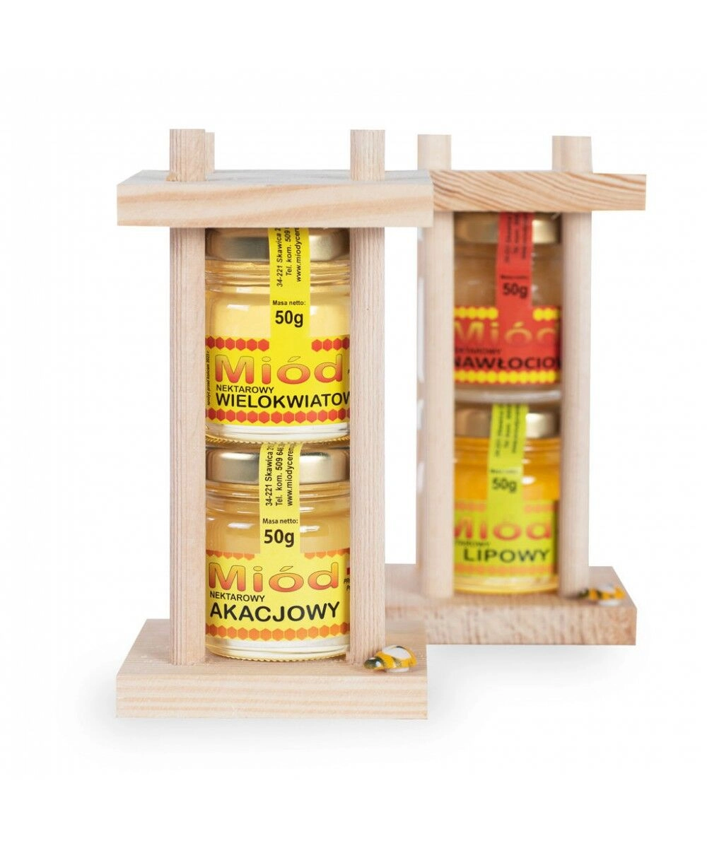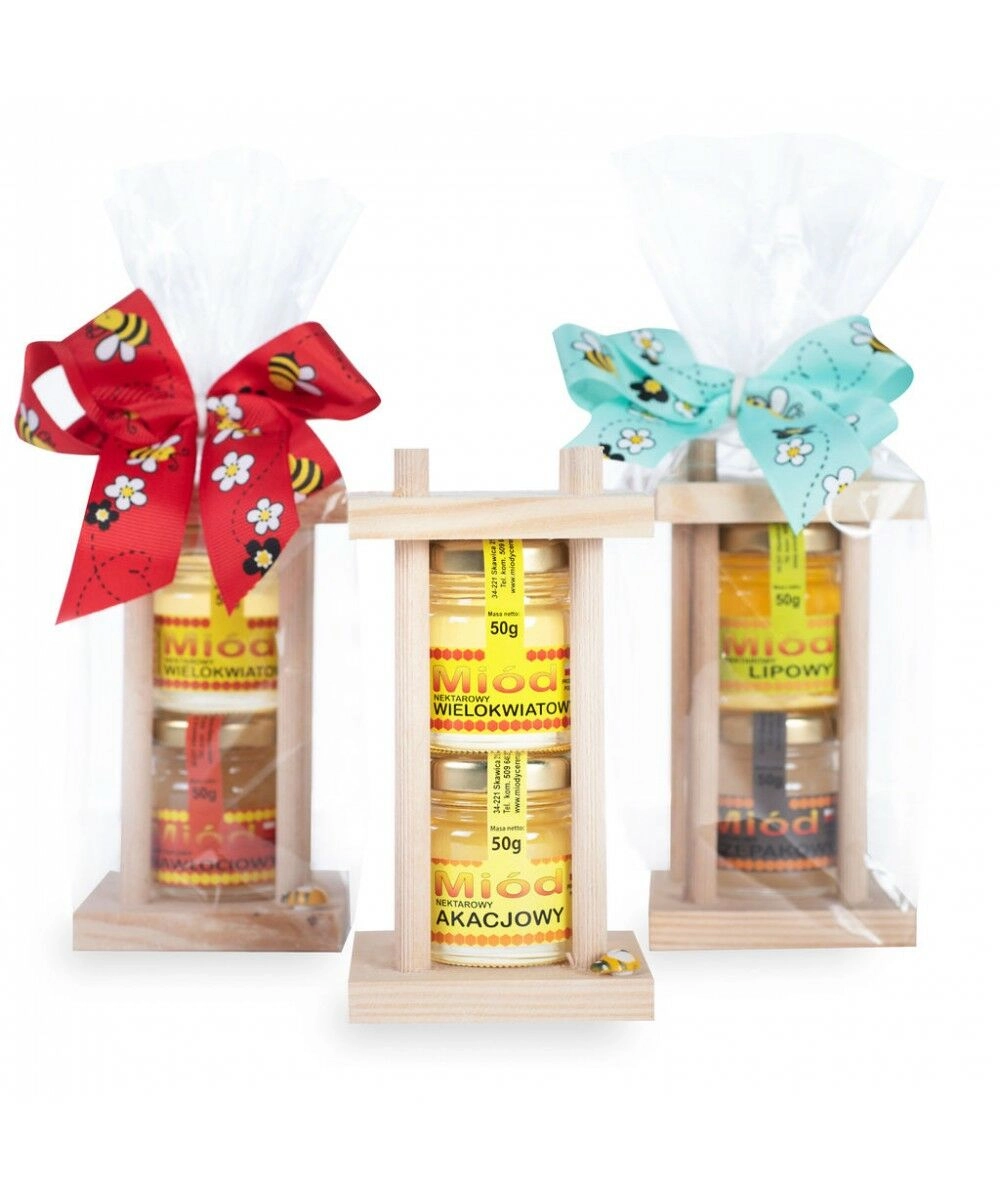 Zestaw składa się z 2 słoiczków (po 50g) różnych, naturalnych miodów.