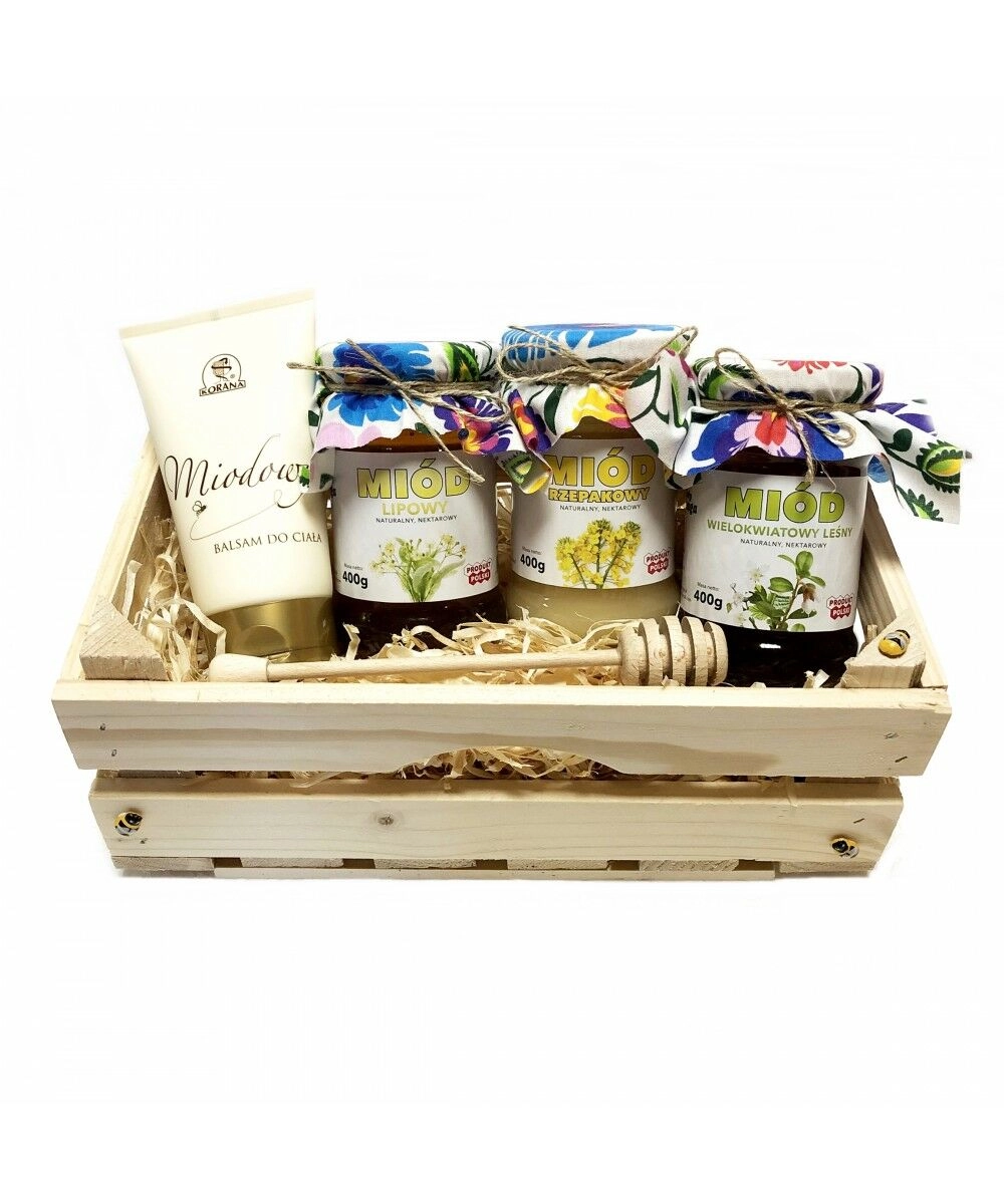 Zestaw miodów 3 x 400g + balsam miodowy